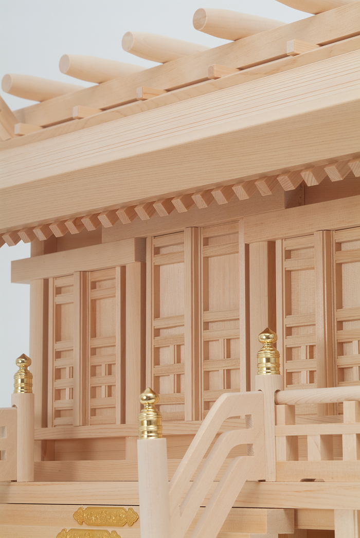 【木曾桧・太鼓屋根三社(たいこやね) 縁束透し(えんつかすかし) 20号】