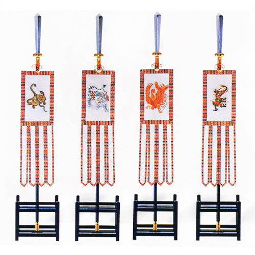 神祭具・調度品 > 旗・祭矛 【神具調度品】四神旗一式 本絹両面 仕立